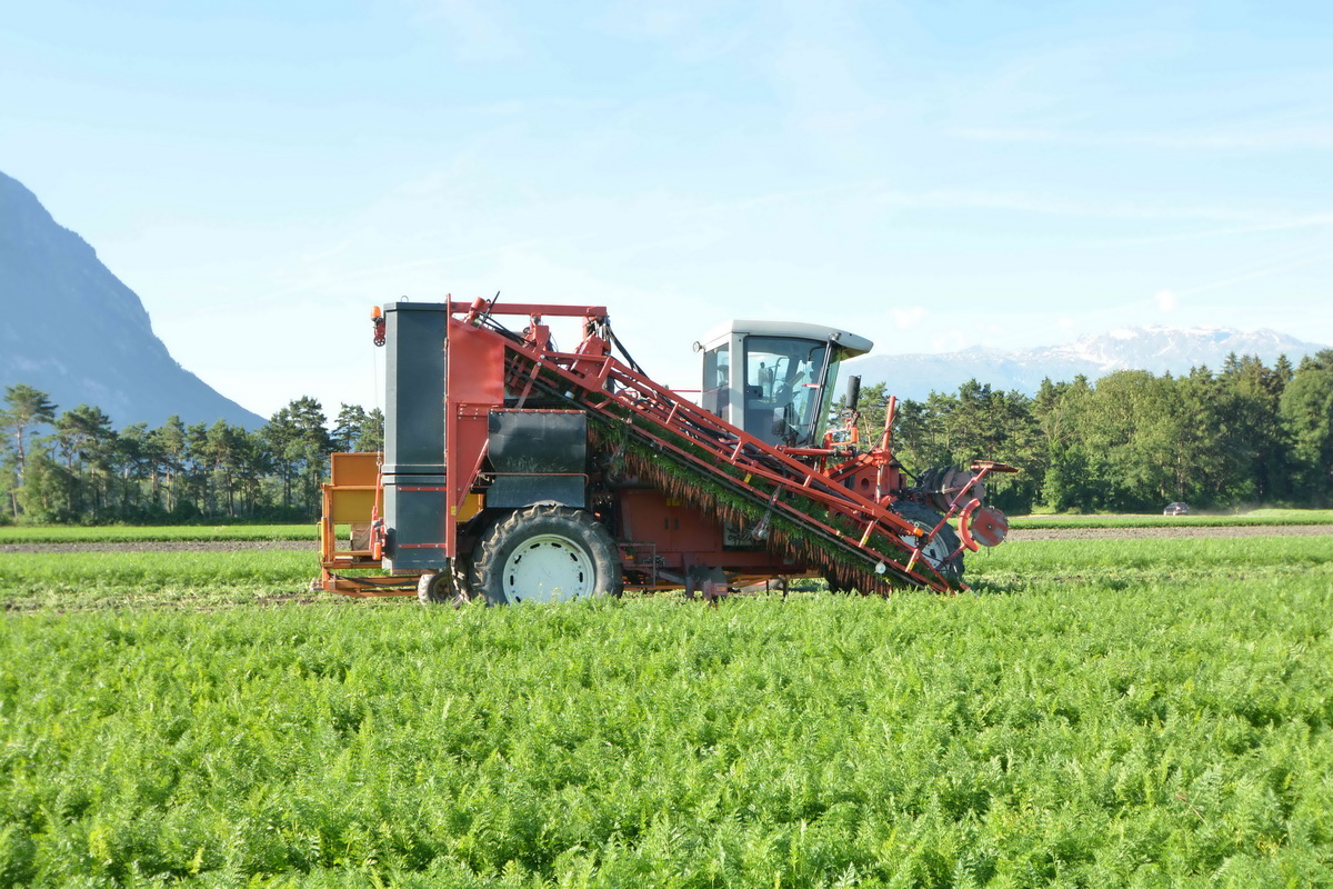 Die herangewachsenen Rüebli werden nach der Ernte auf direktem Wege in die modernen Lager transportiert, wo sie unmittelbar am Verarbeitungsstandort gelagert werden.